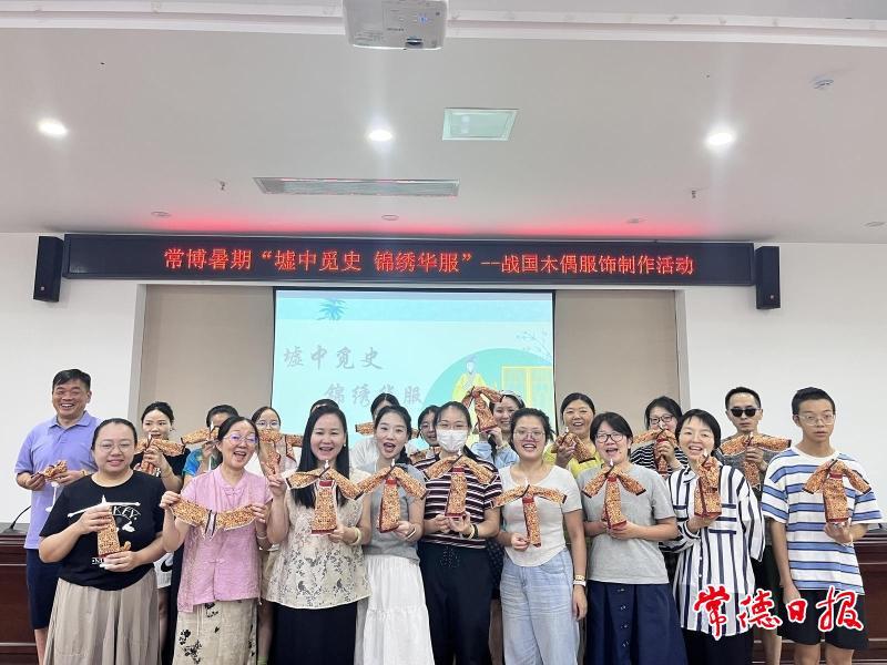 8月30日上午,常德博物館二樓多功能會(huì)議室內(nèi),30位市民靜坐于桌前,手持剪刀和膠水,俯身于木質(zhì)人偶之上,仿制戰(zhàn)國時(shí)期的服飾。在這場名為“墟中覓史·錦繡華服”的戰(zhàn)國木偶服飾制作社教體驗(yàn)活動(dòng)中,現(xiàn)代人與古老文明展開了一場跨越兩千多年的對話。