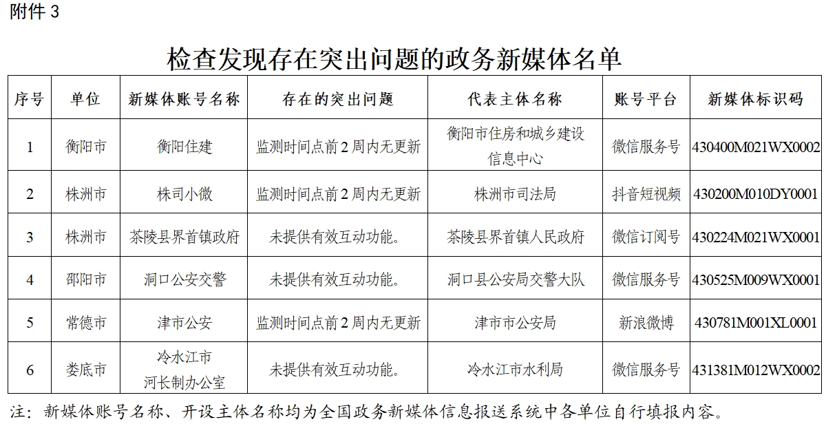 3.檢查發(fā)現(xiàn)存在突出問(wèn)題的政務(wù)新媒體名單