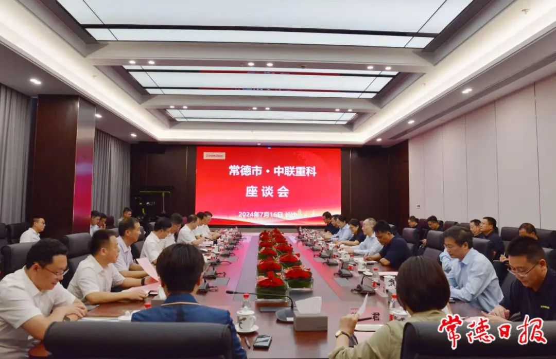 中聯重科聯席總裁羅凱,首席財務官杜毅剛,副總裁孫昌軍、胡克嫚、盧青參加座談。市領導謝勝、傅勇參加拜訪。
