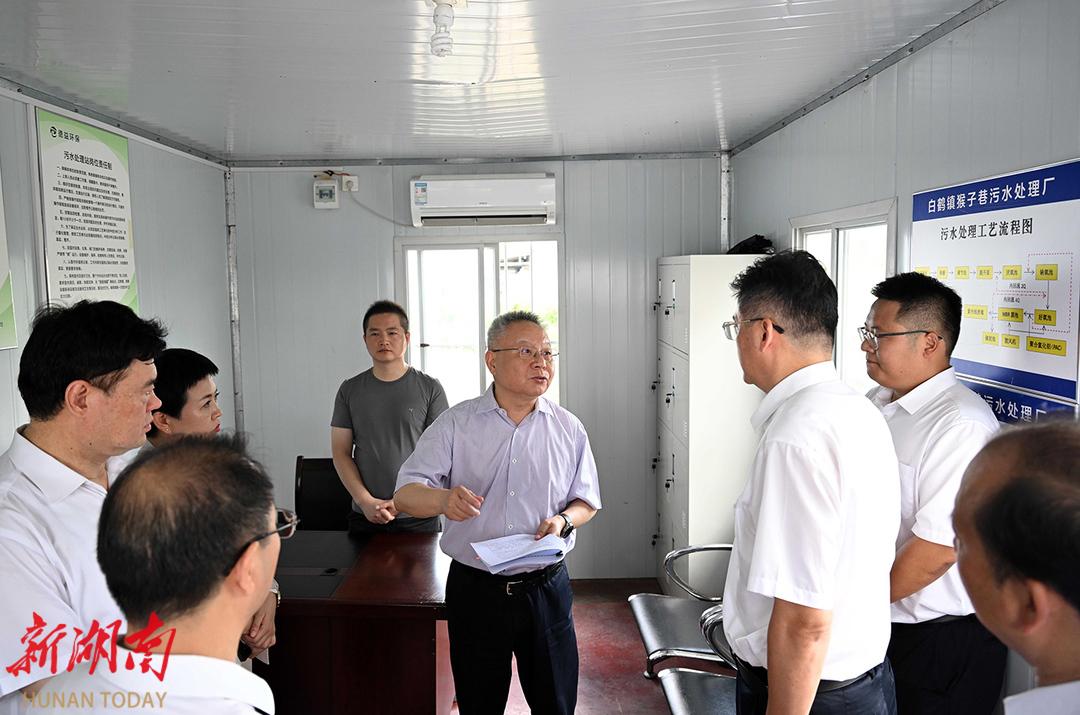 柳葉湖管理區白鶴鎮猴子巷村污水處理站被群眾投訴設備停運、形同虛設,沈曉明來到污水處理站,察看設備恢復運行情況,并聽取常德市生態環保督察反饋問題整改情況匯報,要求切實找準問題癥結,扎實推進整改工作,務求取得實效。