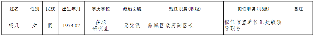 為了加強對干部選拔工作的監督,提高識別和任用干部的準確程度,現對市委常委會會議研究決定的下列擬任人選(候選人人選、提名人選)進行任前公示: