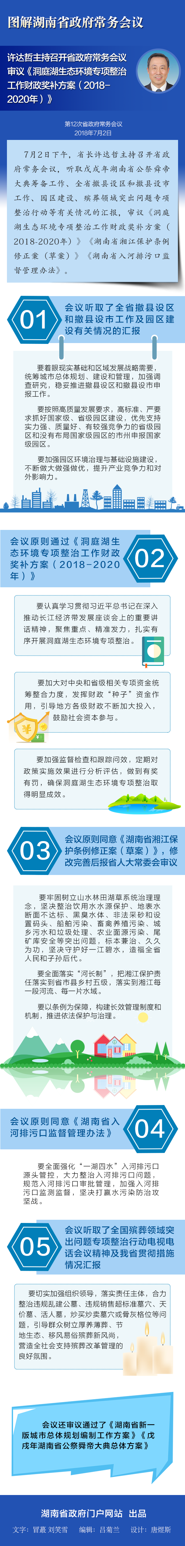 【圖解】7月2日湖南省政府常務會議:審議《洞庭湖生態環境專項整治工作財政獎補方案(2018-2020年)》
