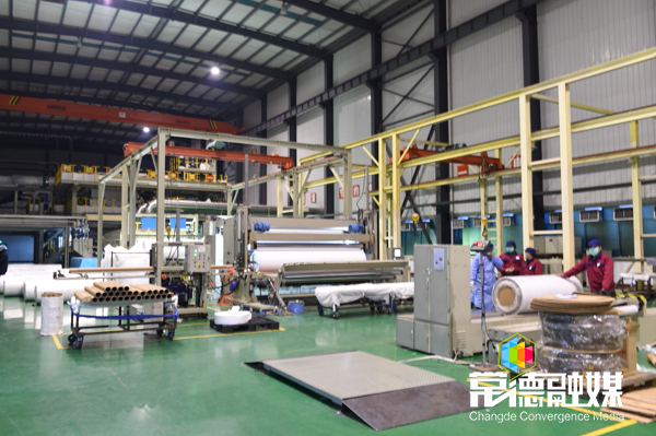 湖南欣龍非織造材料有限公司內正加緊生產口罩所需原材料無紡布