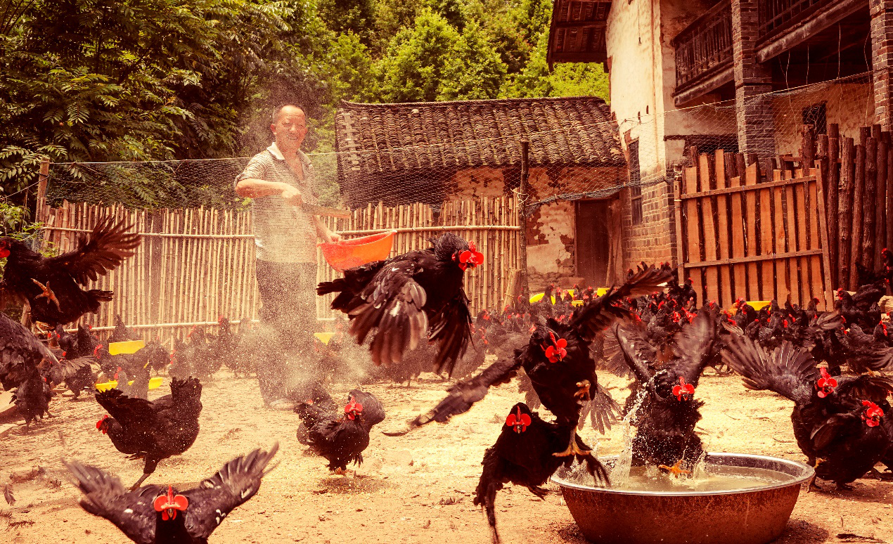 在犀牛坪村一處植被茂密的山坡上,上千只黑身紅頭形似元寶的土雞正在嘰嘰喳喳地啄食。今年54歲的脫貧戶徐學(xué)平以前在外打工,一年到頭也存不上幾個錢,2017年回到家鄉(xiāng)開始養(yǎng)殖土雞,雖然村里生產(chǎn)生活條件一般,但是非常適合生態(tài)養(yǎng)殖,現(xiàn)在他每年養(yǎng)殖近2000只土雞,去年兒子也回到家,和他一起又多養(yǎng)了十幾頭豬,現(xiàn)在家里年收入超過了10萬元。
