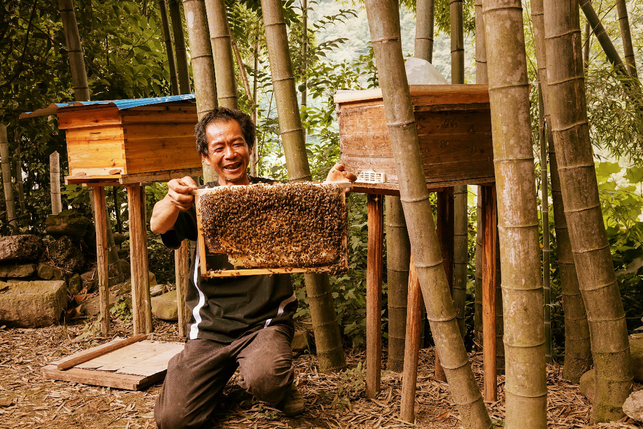 勤勞致富路子多。脫貧戶陳勇章養(yǎng)有30桶蜜蜂,還養(yǎng)了2頭牛、7只羊、2頭豬,種了3、4畝地。除此之外,他還帶領(lǐng)村民種植菖蒲,經(jīng)常上山采摘各種中草藥,如黃姜、七月花等。“現(xiàn)在的年收入有8到10萬元,要特別感謝黨和政府。”談及自己的蜜蜂和藥草產(chǎn)業(yè),陳勇章露出了幸福和自信的笑容。