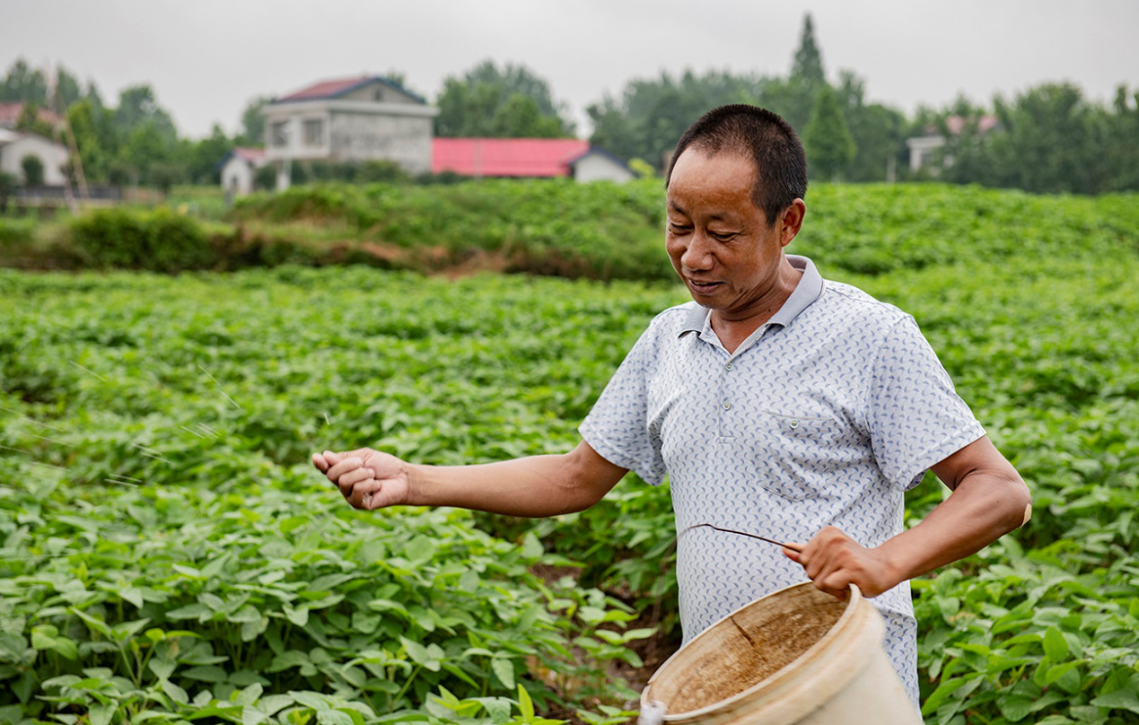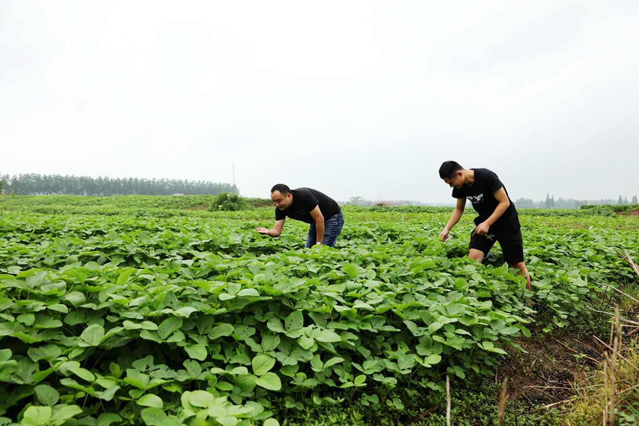 用心用情幫扶讓溫暖直抵人心。常德市民政局駐村幫扶工作隊隊員李俊和李剛來到脫貧戶陳立文的40畝黃豆地里了解種植情況。