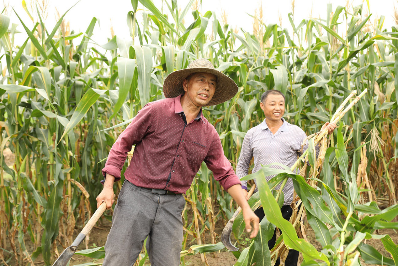 農(nóng)場(chǎng)里,脫貧戶(hù)周高華和向延貴正在收割玉米桿,然后將玉米桿送到奶牛場(chǎng)喂牛。綠盛家庭農(nóng)場(chǎng)通過(guò)提供就業(yè)崗位、免費(fèi)發(fā)放種子以保底價(jià)回收、流轉(zhuǎn)土地租金等方式直接帶動(dòng)8戶(hù)貧困戶(hù)脫貧致富。二人在此務(wù)工每天有150元的工資。