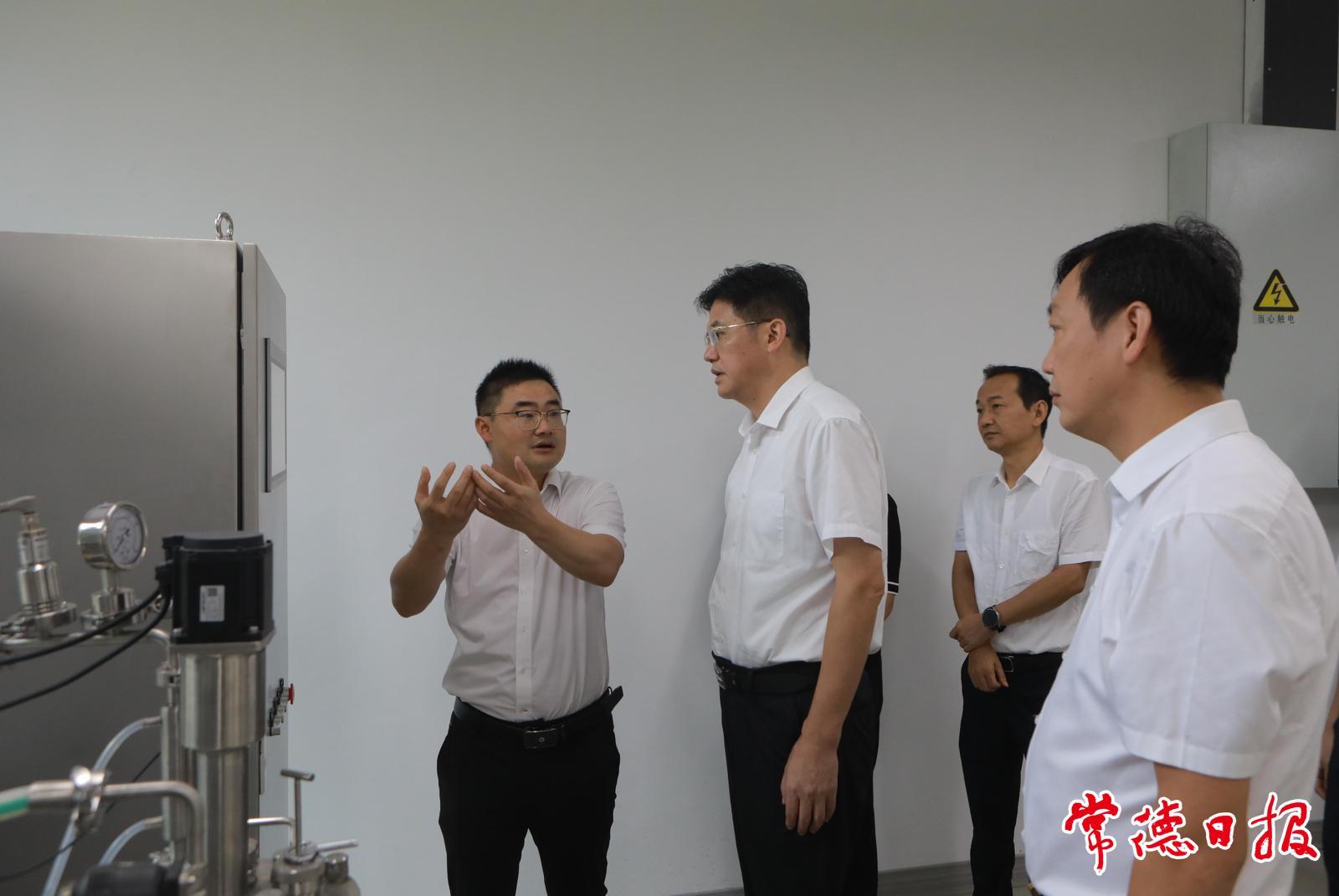 創(chuàng)新中心由常德市人民政府和湖南文理學(xué)院聯(lián)合共建,集科學(xué)研究、分析檢測、概念驗(yàn)證、項(xiàng)目孵化、人才培養(yǎng)、信息交流、成果展示等功能于一體,搭建“產(chǎn)、學(xué)、研、用、金”一體化平臺,加快構(gòu)建“基礎(chǔ)研究+技術(shù)攻關(guān)+成果轉(zhuǎn)化+科技金融+人才支撐”全過程生態(tài)鏈。羅毅君察看創(chuàng)新中心發(fā)酵小試生產(chǎn)線、分析檢測室、實(shí)驗(yàn)室,深入了解建設(shè)進(jìn)度、人才引進(jìn)、成果轉(zhuǎn)化等情況。