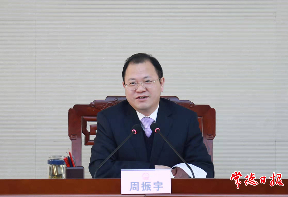 常德日報記者 焦陽 文/圖 今天上午,市委副書記、市長、市政府黨組書記周振宇主持召開新一屆政府第一次黨組(擴大)會議,研究安排新班子領導成員工作分工,對班子建設及相關工作提出要求。