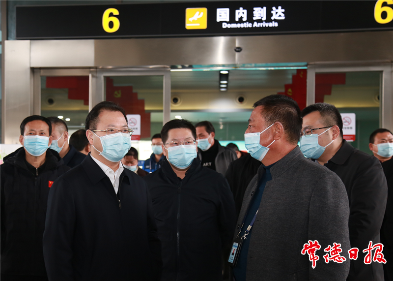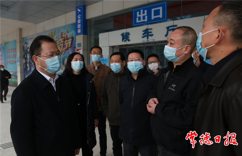 昨日上午,市委副書記、市長周振宇一行先后前往常德火車站、汽車總站、桃花源機場,對我市疫情防控工作進行現場督導。