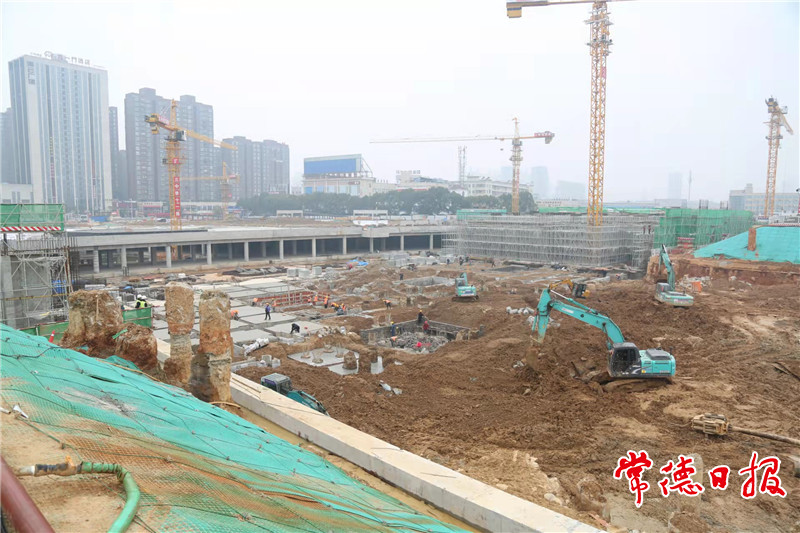 周振宇在常德火車站站房施工現場了解工程進展情況