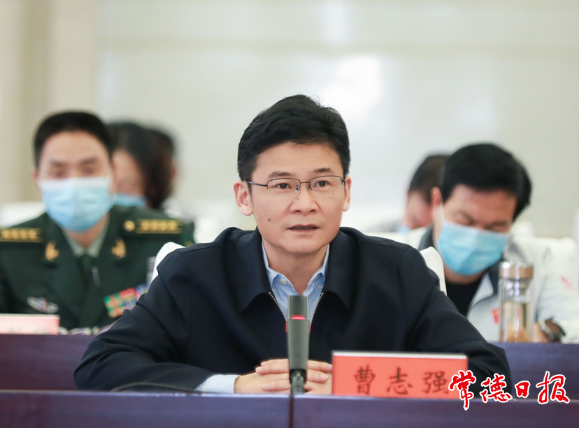 曹志強強調,要扎實推動全國兩會精神在常德落實落地。全市各級各部門要按照省里的部署要求,結合工作實際,找準貫徹落實全國兩會精神的切入口和突破口,大力推進“八項重點工作”、實施六大專項行動,奮力開創各項事業發展新局面。要著力抓好全國兩會精神學習貫徹,把學習宣傳貫徹全國兩會精神特別是習近平總書記重要講話精神,作為當前的重要政治任務來抓,認真安排、精心組織,迅速掀起學習熱潮。要著力做好“六穩”“六保”工作,堅持穩字當頭、穩中求進,穩市場主體、保民生、防風險。要著力發展實體經濟,以培育產業為主攻方向,推進科技創新,促進產業升級,抓好項目建設,推動經濟高質量發展。要著力優化營商環境,堅持把優化營商環境作為“生命線工程”來抓,努力打造全省領先、全國一流的營商環境。要著力創建“五好”園區,堅持“五好”園區的主攻方向、主要目標不動搖,進一步明確園區功能定位,全面提升園區經濟貢獻度和質量效益。要著力推進鄉村振興,守住保障國家糧食安全和不發生規模性返貧兩條底線,做好鄉村發展、鄉村建設、鄉村治理三項重點工作。要著力維護安全穩定,時刻繃緊疫情防控這根弦,堅持“外防輸入、內防反彈”總策略、“動態清零”總方針不放松不動搖,全面落實“四早”要求,壓緊壓實“四方”責任,堅決守住不出現疫情規模性反彈的底線。要著力改進干部作風,以“闖”的精神、“創”的勁頭、“干”的作風抓好全年各項工作任務。
