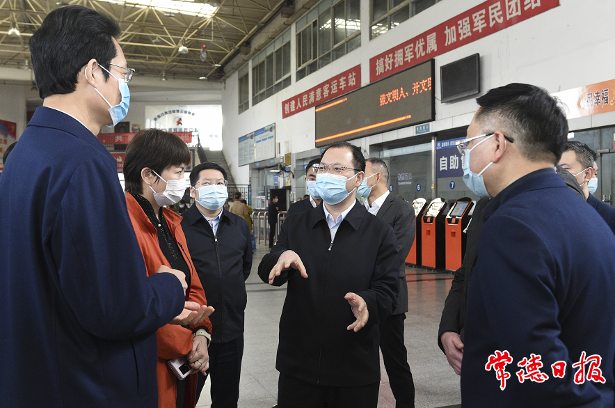 在柳葉湖車站、常德火車站等地,周振宇實地查看出入站口、檢測點等重點部位,詳細了解交通安全保障和疫情防控措施落實情況。我市嚴格落實交通站場進出口防控管理措施,相關部門抽調專門人員輪流值守,確保24小時防控不斷更。周振宇叮囑大家要注意個人防護,同時要加強外地入常人員信息排查和閉環管理,堅持“人物同防”,確保“外防輸入”萬無一失。在大西門碼頭,周振宇詳細了解碼頭基礎設施建設、渡航安全及疫情防控措施落實等情況,希望相關部門、企業要落實落細安全生產責任,確保疫情防控安全、水上交通安全和環保安全。在常德芷蘭實驗學校,周振宇指出,校園疫情防控至關重要,要突出家校共防,引導家長配合做好疫情防控工作,共同維護校園防疫安全。