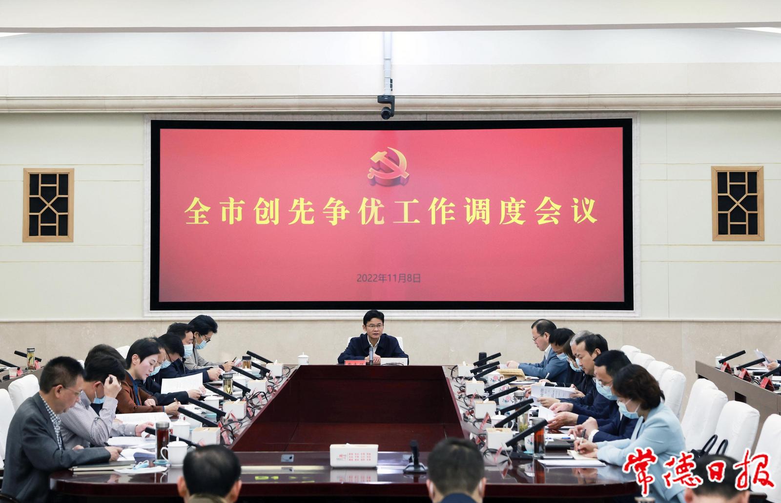 周振宇指出,要充分認清形勢,增強創先爭優意識。當前創先爭優目標很明確、任務很艱巨、競爭很激烈,一定要有清醒認識,做到心里有數、手中有招、肩上有責,堅定信心、搶抓進度,找準方法、迎頭趕上,盡最大努力爭取最好結果。要堅持揚長補短,把握創先爭優關鍵。創先爭優,既是“面子”問題,也是“里子”問題,要抓住關鍵、精準發力,揚長補短、查漏補缺,把長板鍛長、把短板補齊、把底板固牢,爭取多加分、不扣分、得高分。要壓實各方責任,凝聚創先爭優合力。緊緊抓住壓實責任鏈這個“牛鼻子”,調動一切可以調動的積極因素,加強組織領導、協作共進、匯報銜接和督導考核,層層傳導壓力,廣泛凝聚共識,全力以赴創先爭優,以一地一域之力為全局增光添彩。