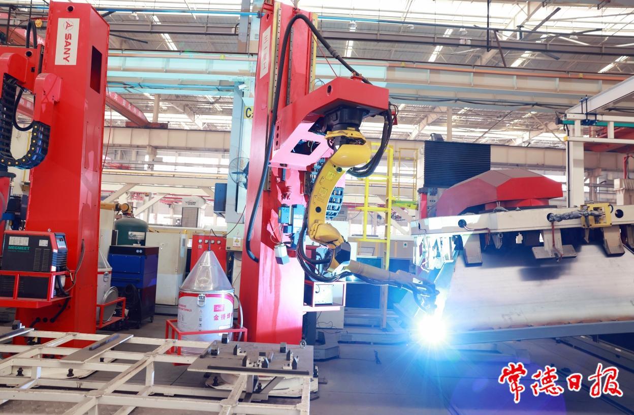 常德市三一機械有限公司車間內焊接機器人正在生產
