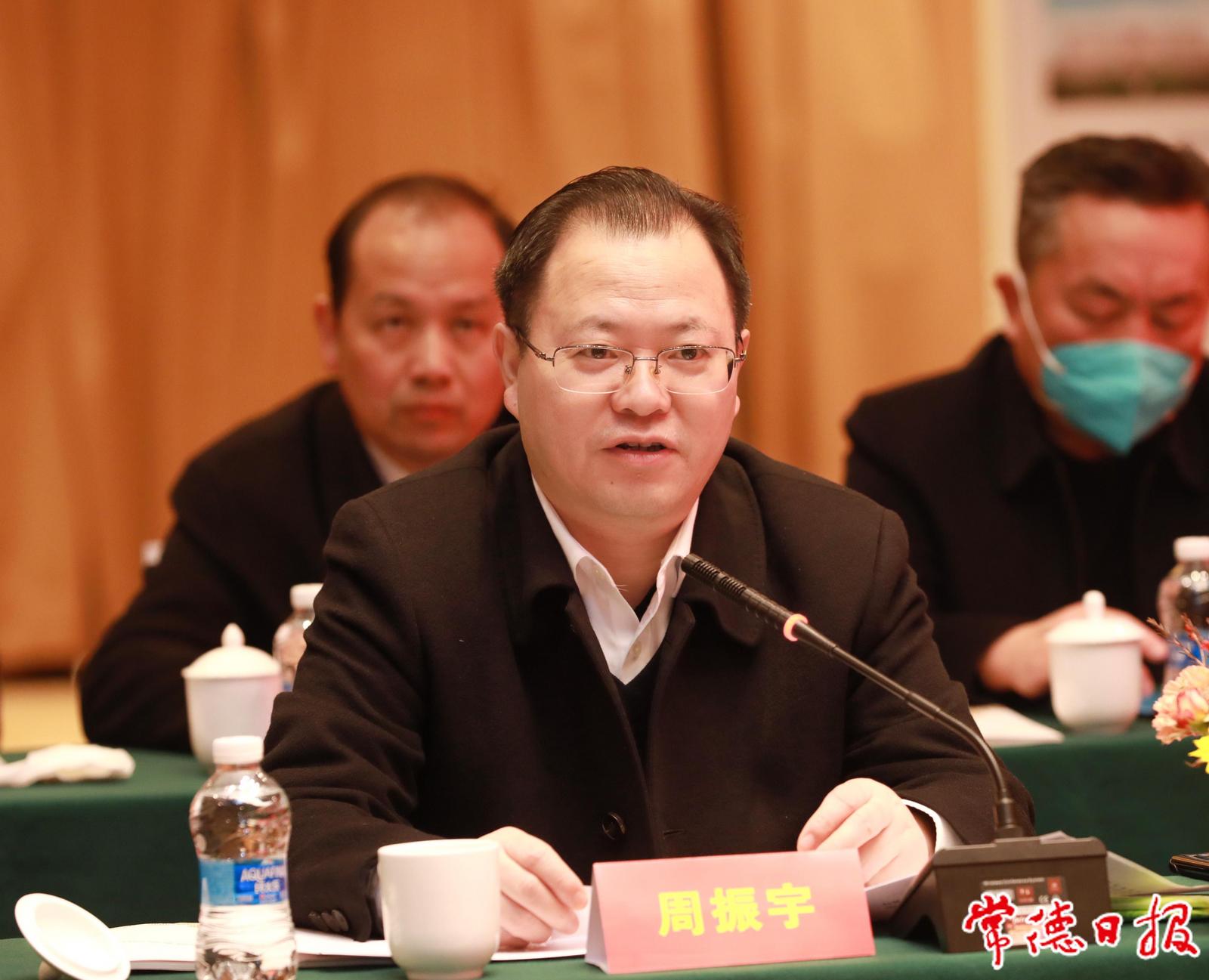 周振宇代表市委、市政府,向省地質院長期以來對常德發展給予的關心和支持表示衷心感謝。他表示,扎根常德60多年的地質403隊、413隊,長期與常德保持良好合作關系,在我市礦產資源勘查、生態環境治理、地質災害防治等工作中作出了積極貢獻。此次雙方正式建立戰略合作伙伴關系,對于更好助推常德經濟社會高質量發展,更好實現互利共贏具有重要意義。他指出,要推動溝通交流常態化,確保雙方合作有力有序有效推進,打造地方政府與地質部門協作發展的典范;要促進合作事項項目化,確保工作有載體、有抓手、有支撐;要做到服務保障精細化,確保戰略合作取得豐碩成果。