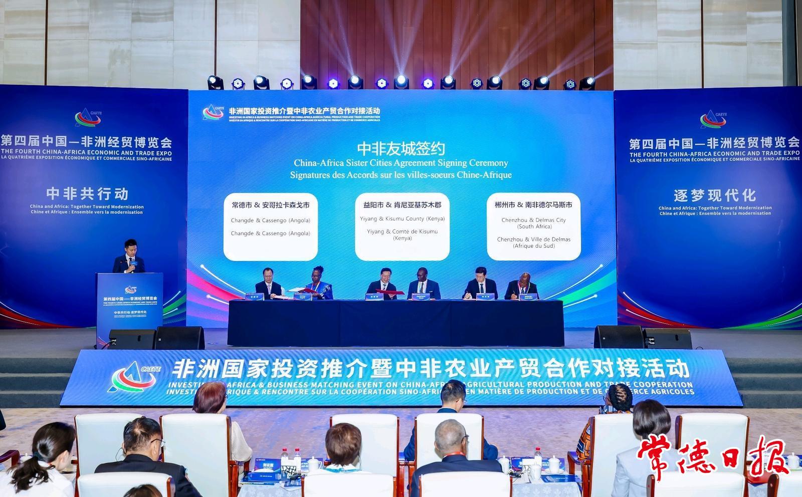 6月13日,常德市與安哥拉南隆達省卡森戈市簽訂建立友好城市關系協議,正式締結友好城市。6月14日,卡森戈市市長弗朗西斯卡·曼甘達一行來常考察。市委書記羅毅君與弗朗西斯卡·曼甘達一行座談。市委副書記、市長周振宇在第四屆中國—非洲經貿博覽會“非洲國家投資推介暨中非農業產貿合作對接活動”上代表常德市簽約。