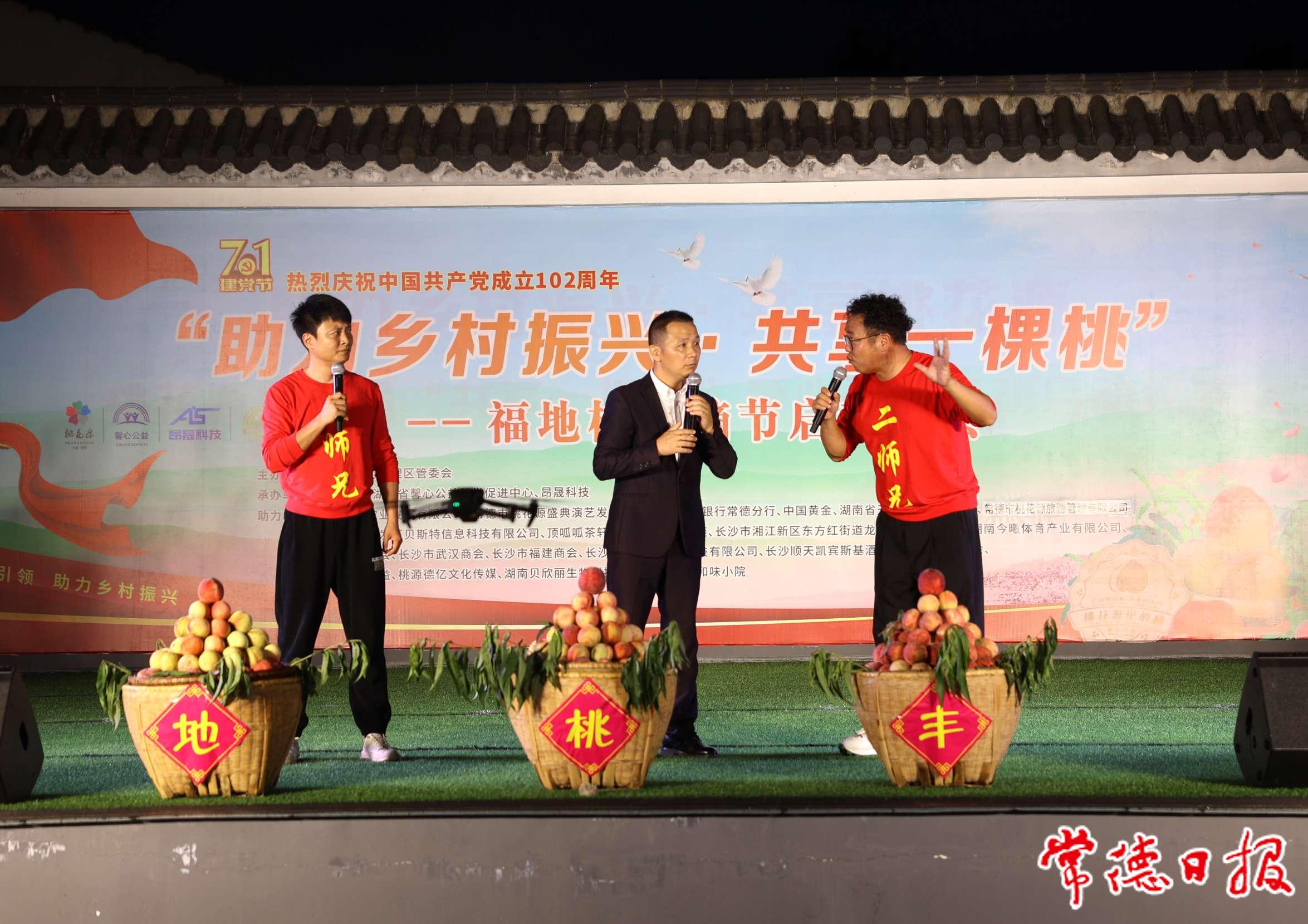 7月3日晚,“助力鄉村振興·共享一棵桃”福地桃采摘節啟動晚會在桃花源旅游管理區桃花源鎮桃仙嶺村村委會前坪舉行。活動由桃花源鎮人民政府、湖南省馨心公益助學促進中心、昂晟科技共同承辦。桃花源旅游管理區領導、管理區部分委辦局等單位負責人參加了活動。