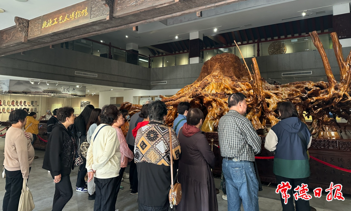 來到桃花源洞天福地的源頭桃源山,從山腳下的桃源工藝術(shù)博物館的非遺木雕到始建于唐代的桃川書院,到山頂上水府閣眺望“漁村夕照”。
