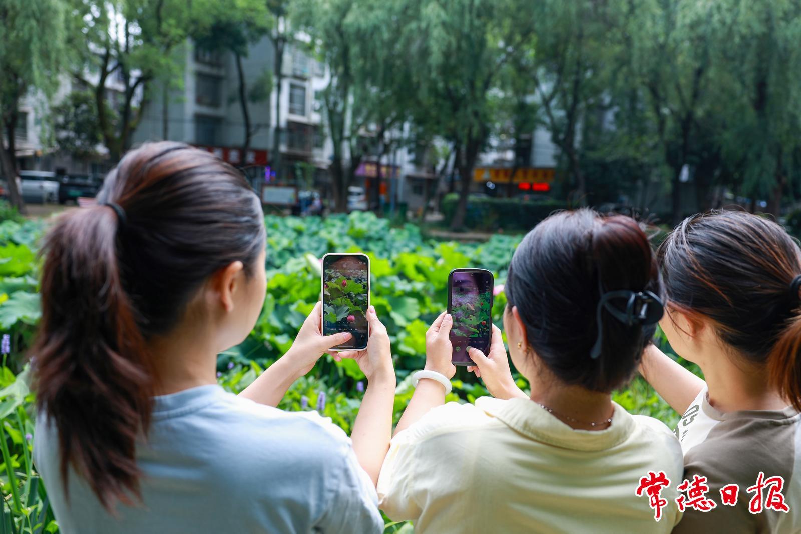 6月9日,常德市城區(qū)濱湖人防公園內(nèi),荷花競相綻放。它們或含苞待放,或嬌艷盛開,與田田荷葉相互映襯,勾勒出一幅如詩如畫的夏日美景。迷人的景致吸引了市民前來拍照打卡,記錄下這份夏日獨有的美好。