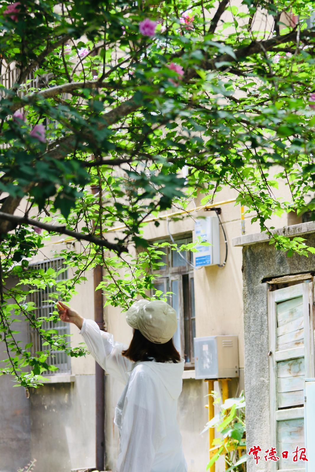 從狹窄的巷道里穿出來,我們經過光榮路社區文化巷的新二村,來到位于洞庭大道與三閭路十字路口旁的東風路。東風路兩邊大多是自建房,有些臨路的房屋租出去開了時尚小店,不止廚房就是其中一家。不止廚房旁邊的一條巷道,居民家露出的紅墻、門前栽種的花草和高過屋頂的樹蔭,讓巷道顯得格外幽深,日落時分,從巷道深處慢慢向外走,如同從一個悠長的故事里走出來。