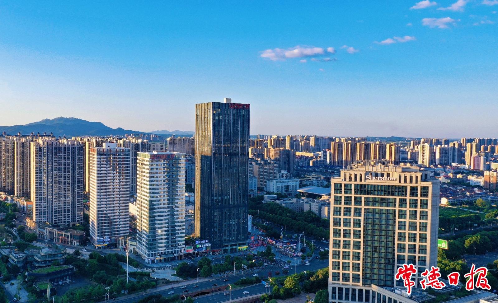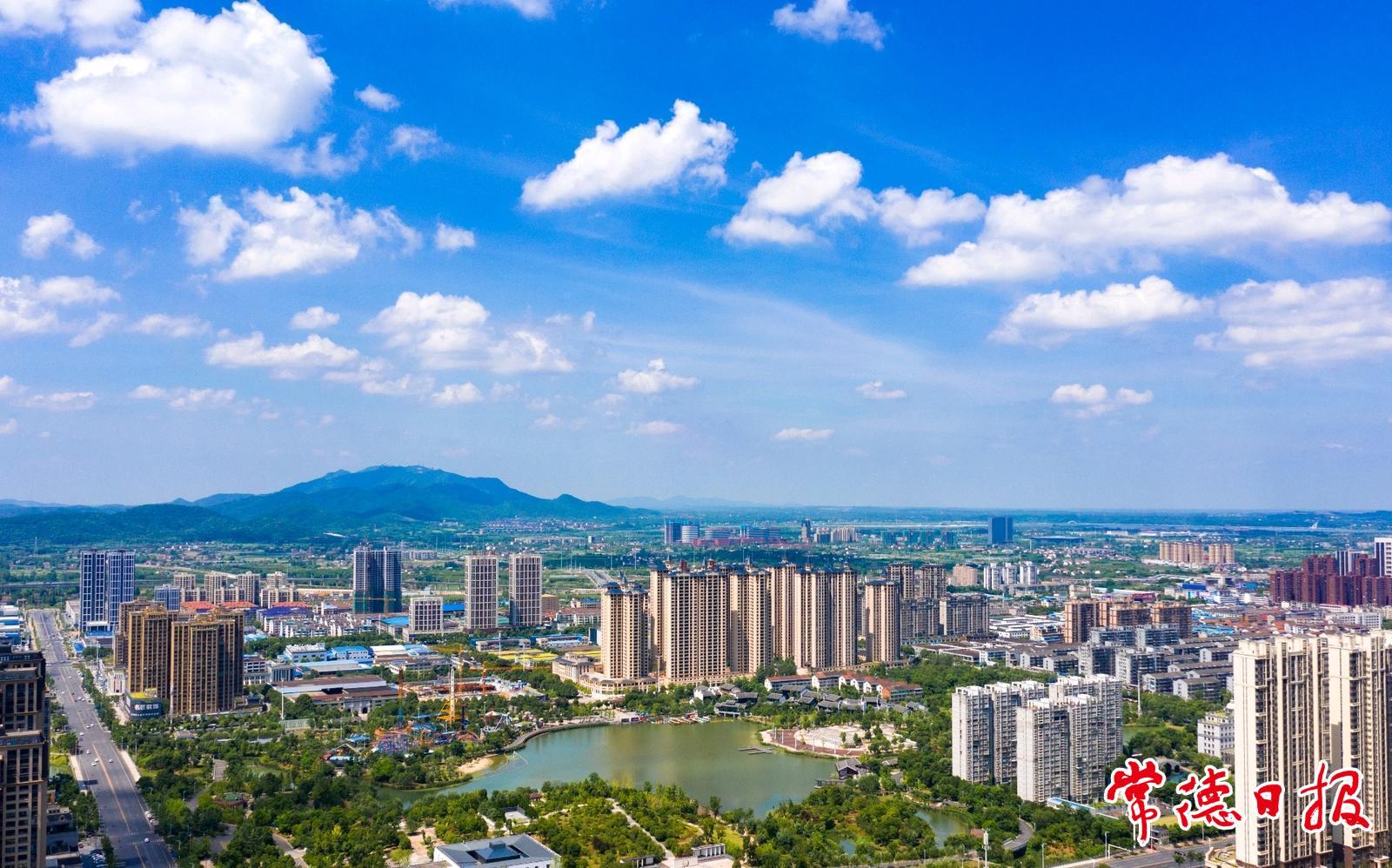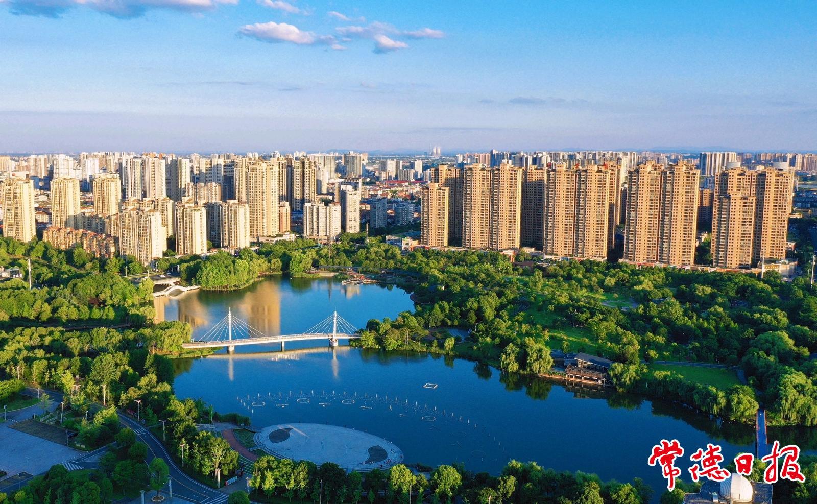 7月3日,常德持續晴好天氣,城區航拍畫面中,城市天際線輪廓分明,遠處太陽山清晰可見,空氣能見度極高,山巒與城市建筑相映成趣,展現出一幅生態與都市交融的美麗圖景。