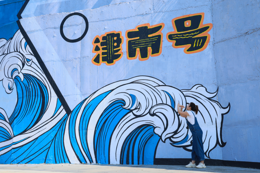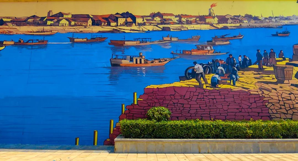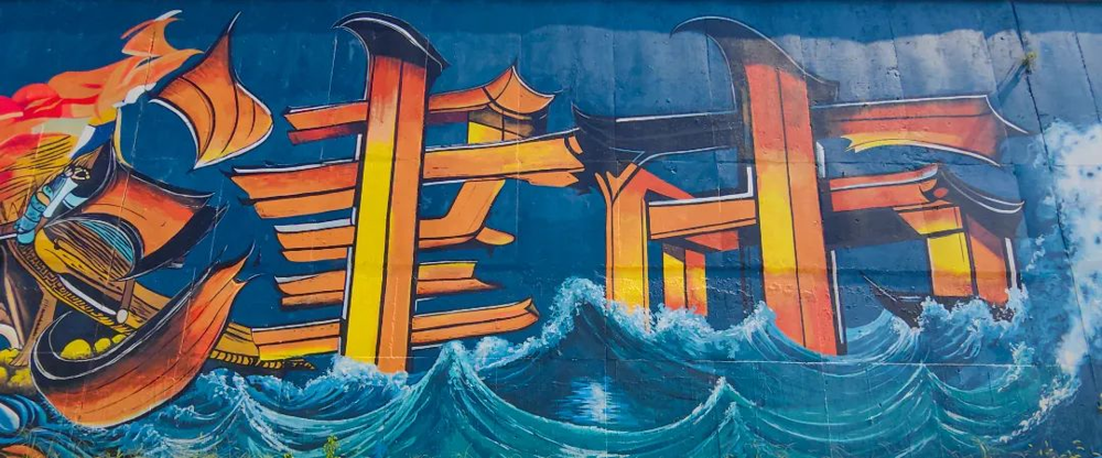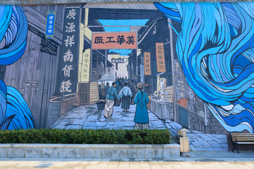 津市碼頭,曾是南來(lái)北往商船的樞紐。涂鴉墻用濃烈色彩還原了帆影搖曳、纖夫號(hào)子震天的盛景,吊腳樓與石階交錯(cuò),鹽倉(cāng)、糧行的印記訴說(shuō)著“小南京”的商貿(mào)傳奇,每一筆都浸透著水運(yùn)文明的煙火氣。
