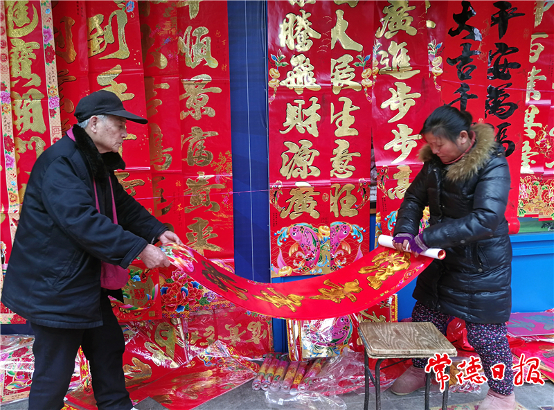 · 1月22日,漢壽縣城滄浪西路,居民購買春聯。 曾明山 攝