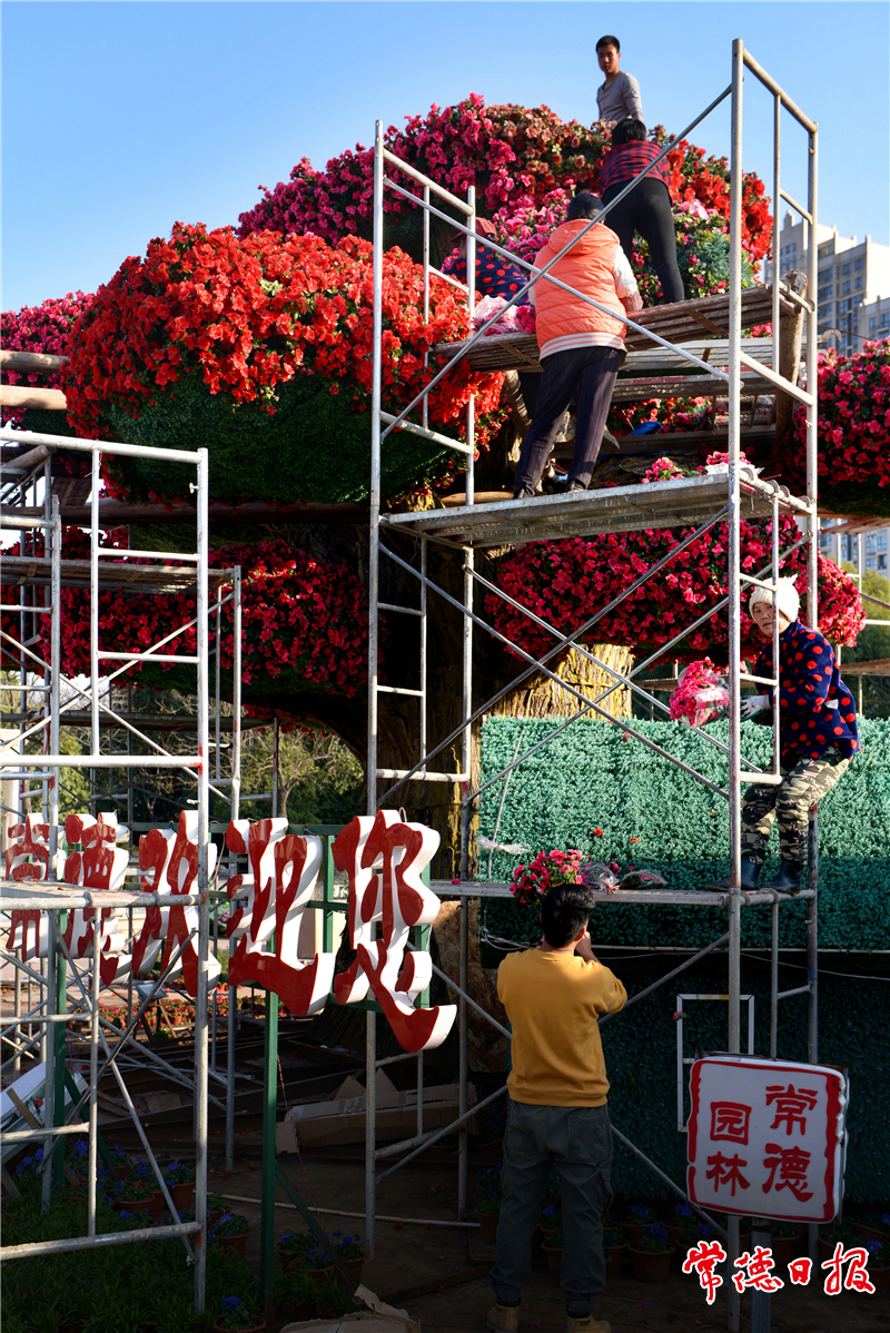 · 1月13日,市城西綠化管理處工作人員布置常德火車站廣場春節景觀。 徐珊珊 攝