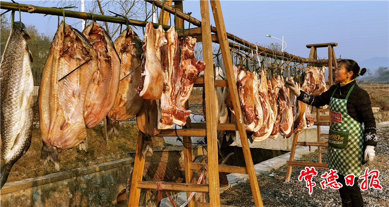 · 2020年12月20日,桃源縣黃石鎮農民曬臘肉。朱世奎 攝