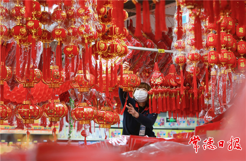 · 1月20日,市城區大潤發超市“年貨大街”,等待市民挑選的大紅燈籠。李龍 攝