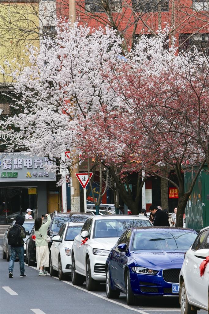 2月18日,武陵區高山街,櫻花綻放。 李龍 攝