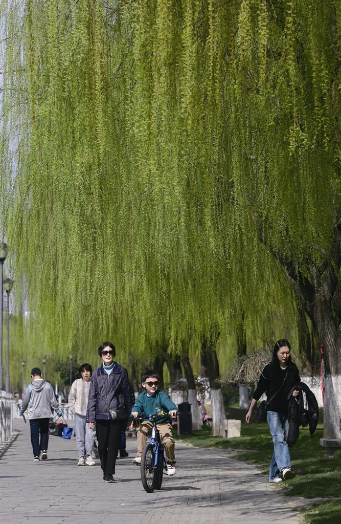 2月20日,詩墻公園,垂柳如同綠色的瀑布。 李龍 攝
