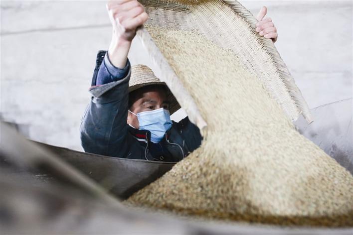 工人在鼎城區雙橋坪鎮農資儲備倉庫內選種。 本報記者 李龍 攝