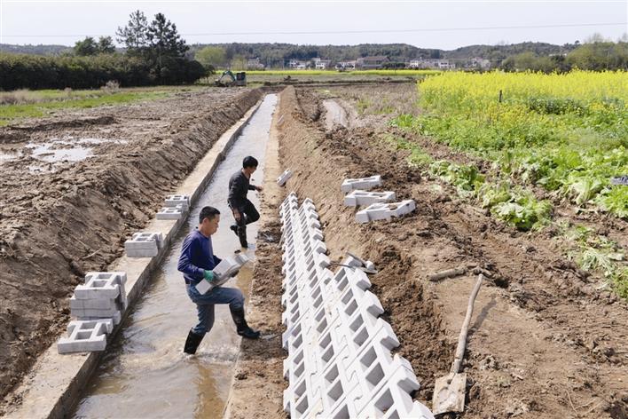3月4日,鼎城區興隆街村村民趁著春光興修溝渠。本報記者 徐珊珊 攝