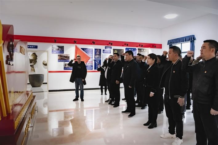 清明節前夕,修葺一新的“漢益沅聯區蘇維埃政府革命歷史陳列館”向社會開放,參觀者在館內重溫入黨誓詞。曾明山 攝