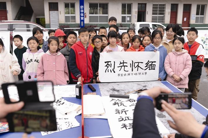4月1日,鼎城區周家店鎮中學學生創作清明節主題書畫作品。 徐珊珊 攝