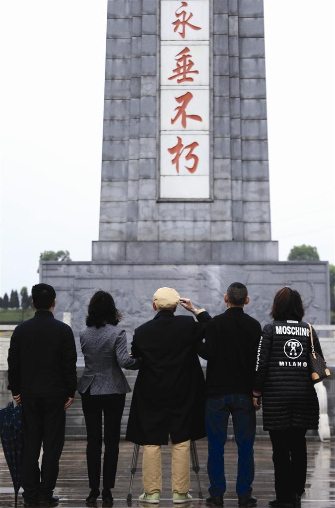 3月30日清早,懷著無比激動的心情,92歲的抗美援朝老兵趙惠澤在武陵區退役軍人事務局工作人員的陪同下,來到石門縣革命烈士陵園祭拜他的父親老紅軍趙詩要。劉頌 攝