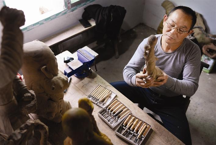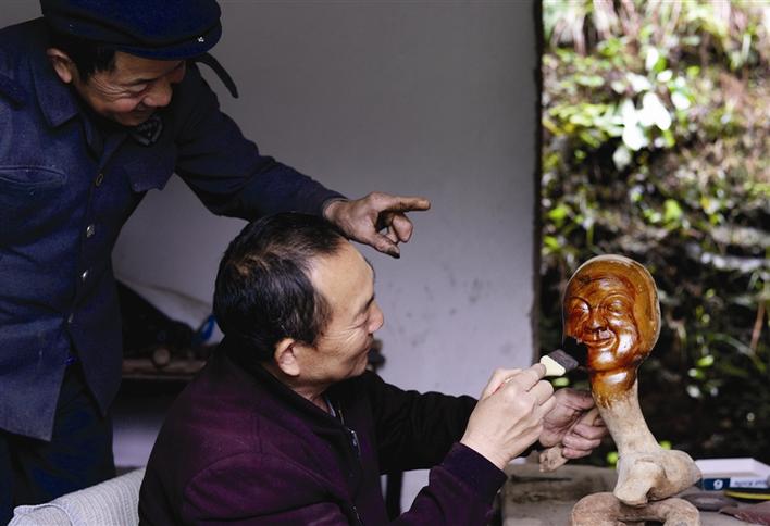 邱青山從未出售過作品,熱愛木雕,心有寄托,家人支持,他自己覺得很滿足。