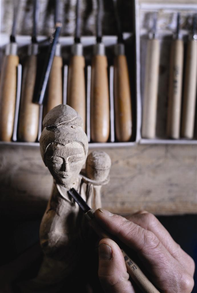 39歲之前,邱青山從未覺得自己有木雕方面的天賦。直到一次看到工地旁邊木雕作坊里擺滿了精美的工藝品,還有雕刻師傅運刀的樣子,才想大膽去嘗試一下。