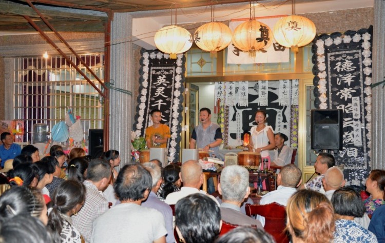 鼓盆歌是荊楚巫儺、祭祀文化的典型代表,藝術內涵豐富,表現為唱詞的文學性極強:常用韻11個半,中華人民共和國成立前要求一韻到底,后來有所變動;句式結構在清朝前期為五字句,清嘉慶年間,落第秀才蘇金福改為七字句;上世紀七十年代在澧縣文化館的主導下,引入多字句式,把口傳變為文本傳,演唱改說唱,坐唱改站唱;演唱語言以“澧州官話”為主,注重地域性和即時性。