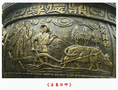 傳說在堯帝南巡的時(shí)候,在德山腳下的善卷垸遇到了用黃牛耕田的善卷先生,看到那黃牛拉犁并不太用勁,還時(shí)不時(shí)吃田坎上的青草,而善卷先生呢,雖然手里拿著根用荊棘做成的鞭子,但并沒有抽打到牛的身上。堯帝感到很好奇,就上前問道:“先生耕田怎么不用水牛呢?黃牛力氣小而且很懶惰呢。”善卷先生回答說:“黃牛力氣小但是每天負(fù)犁耕田養(yǎng)活了我,你怎么能說它的壞話呢?我也不能讓它更辛苦啊!”堯帝又問:“你不想使它用力拉犁,怎么手里還拿著荊條呢?”善卷回答道:“我手持荊條是為了驅(qū)趕黃牛身上的蚊子啊!”堯帝大悟,知道眼前是一個(gè)大善大德之人,后來又知道是這里德行達(dá)智名震四方的善卷先生,便拜善卷先生為師了。