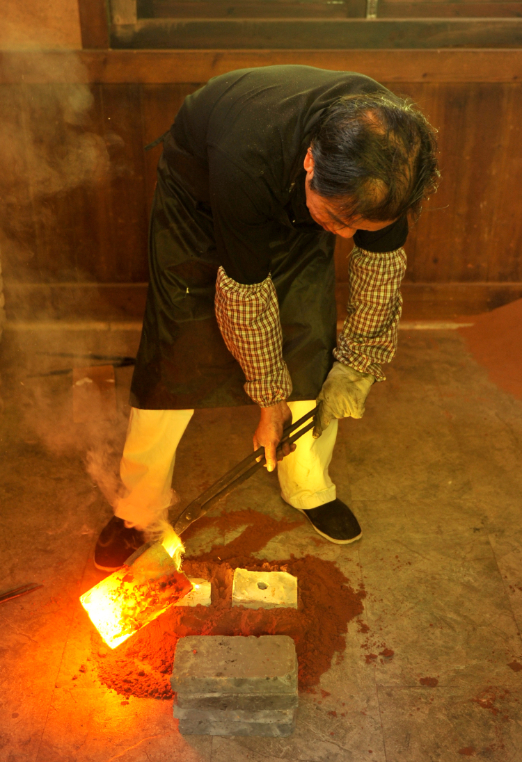 “張打鐵,李打銅,一個發家一個窮,打鐵只靠一爐火,打銅要過幾道熔。”這首在桃源流傳久遠的民謠道出了桃源銅器制作技藝的復雜工藝流程和工作辛苦度。桃源銅器制作采用的失蠟法是沿用古代青銅鑄造較普遍和成熟的工藝。縣域內出土方罍之王—皿方全天罍是商代制品,國家級文物保護單位采菱城周邊出土戰國時期多種青銅器證明,桃源銅器制作技藝已有3000多年歷史,至今仍在全縣流傳。