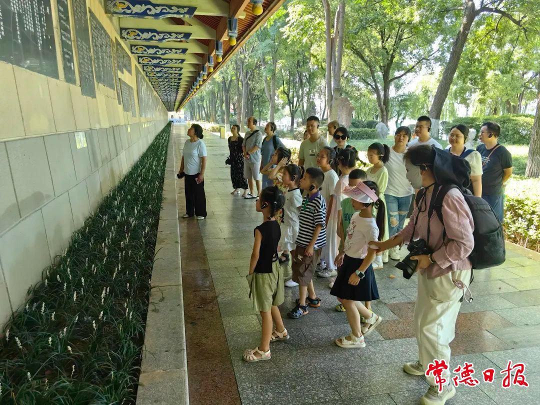上午9時,一場行走的思政課——“詩墻上的紅色中國”講解率先開啟。詩墻第五篇章《華夏新聲》精選了253首經典詩作。講解員通過生動講述詩里的故事,帶領大家感受近代中華民族從屈辱、抗爭、啟蒙,到覺醒、奮斗和新生的歷程。大家聽得認真,不時駐足細看,還有人用手機記錄下精彩內容。一位帶孩子來體驗的家長說:“暑假帶孩子來參加這樣的講解活動,讓孩子了解歷史,很有意義。”